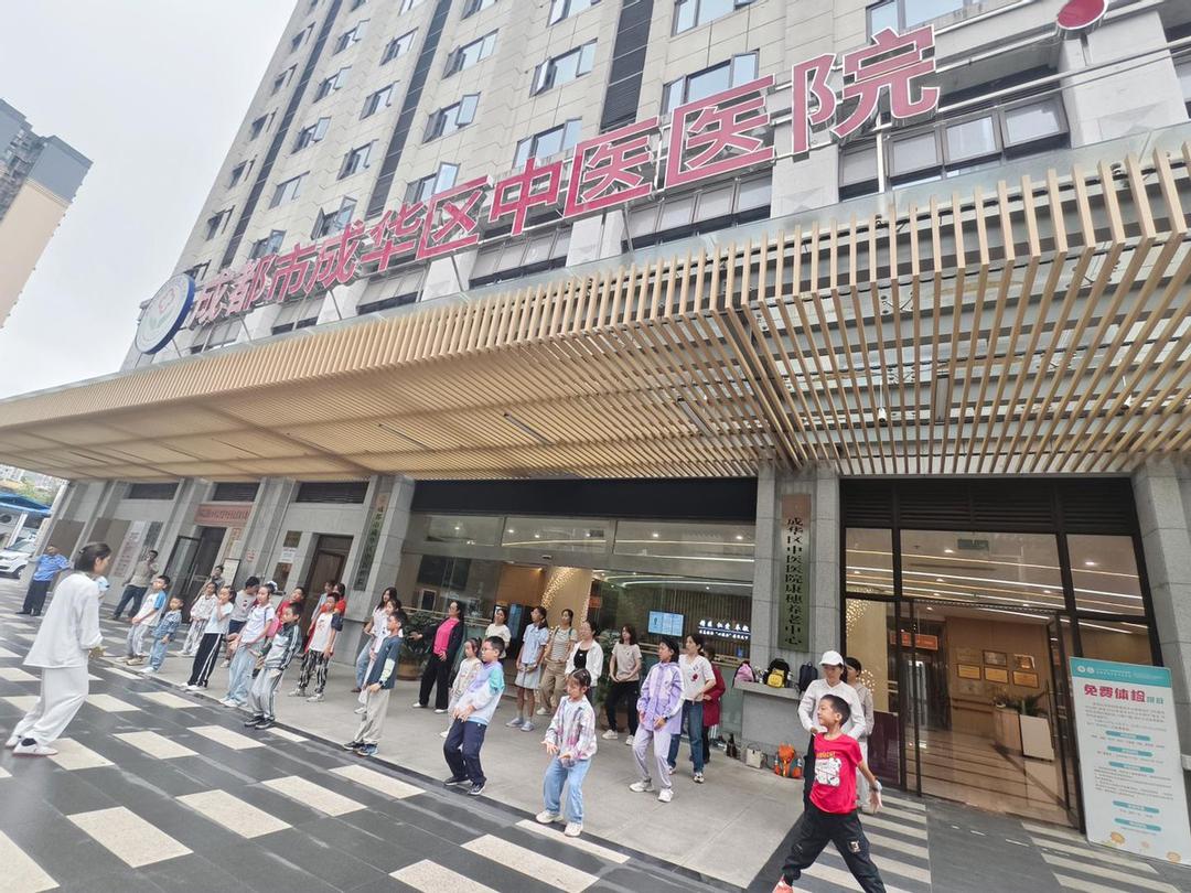 活动于上午9点准时拉开帷幕,在成华区中医医院1楼大厅,孩子和家长们签到之后,在专业团队的带领下,于户外进行了传统八段锦的学习,也感受了中医“治未病”的理念。