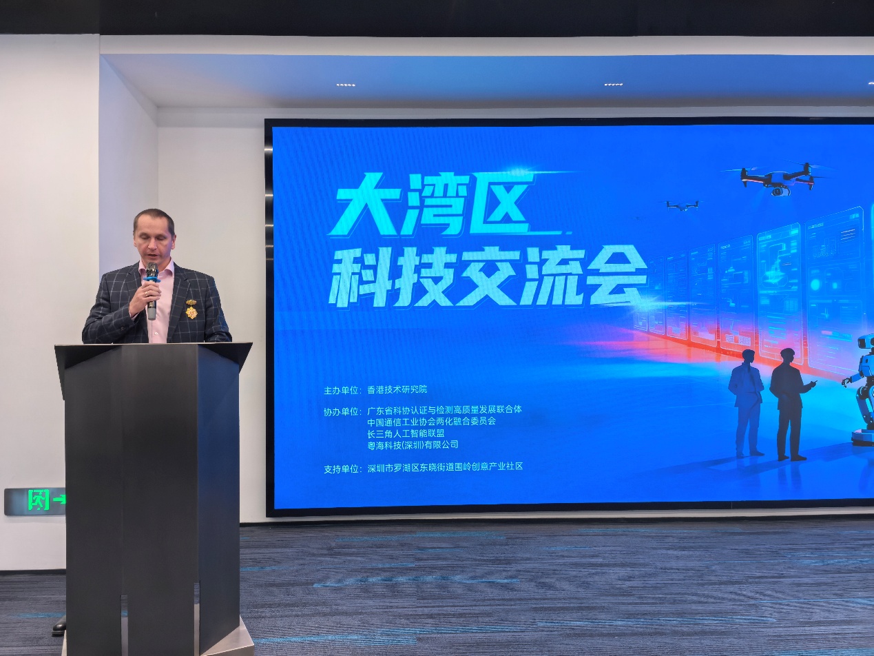 为深入贯彻粤港澳大湾区建设国家战略部署,紧扣创新驱动发展主线,搭建区域科技协同创新与人才交流合作高端平台,2026年1月18日,以“智创湾区,产研共融”为主题的“大湾区科技交流会议”在深圳市罗湖区粤海置地大厦顺利召开。会议由香港技术研究院主办,中国云体系产业创新战略联盟、广东省科协认证与检测高质量发展联合体、中国通信工业协会两化融合委员会、长三角人工智能联盟、粤海科技(深圳)有限公司等联合协办,深圳市罗湖区东晓街道围岭创意产业社区提供支持,来自粤港澳大湾区及全国多地的高校学者、科研骨干、企业精英齐聚一堂,共探科技创新前沿趋势,共商产研深度融合路径,为大湾区高质量发展凝聚智慧力量。会上,隆重举行系列颁奖授牌、科研平台认定及机构成立仪式。中国云体系联盟秘书长、格鲁吉亚国家科学院外籍院士、玻利维亚国家科学院外籍院士、清华智能网络计算实验室主任、香港技术研究院副院长沈寓实博士应邀出席,当选香港技术研究院院士、太平学者、博士后导师,并做主题发言。
